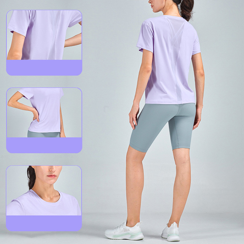 | نام | برهنه احساس یوگا آستین کوتاه مش دوخت دویدن ورزشی تناسب اندام تاپ تی شرت زنانه |