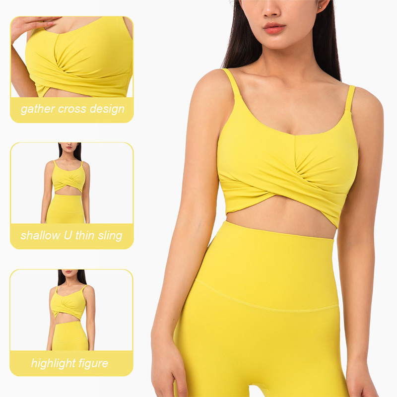 سوتین یوگا ورزشی زنانه صلیب کم عمق U نازک با پد سینه قابل جابجایی